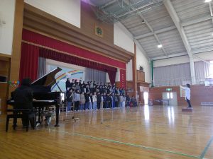 在校生からは、「あなたにありがとう」の合唱をプレゼントしました。先生たちからも、「僕のこと」の合唱のプレゼントがありました。(放課後に練習しましたよ。)