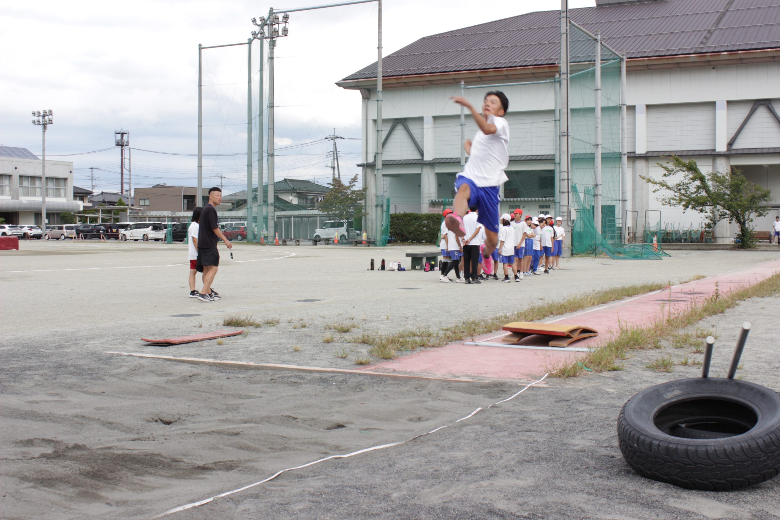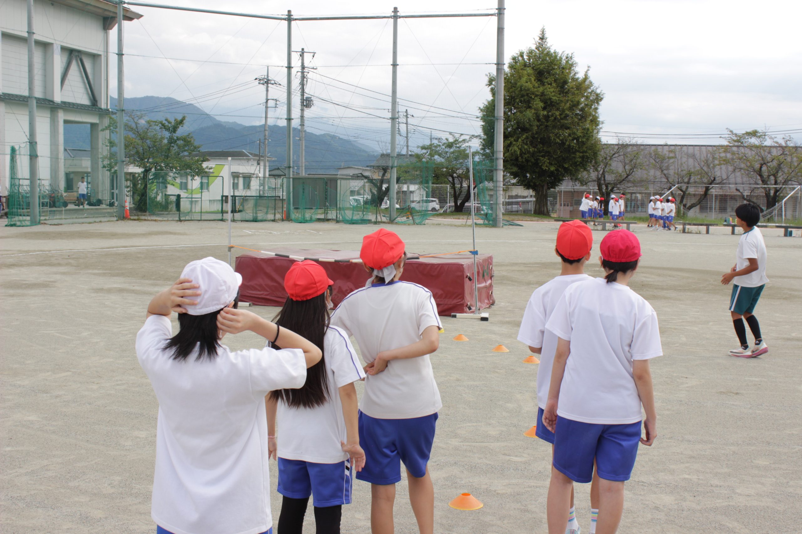 みんなであいさつを交わしたのち、競技種目ごとに分かれて練習を行いました。中学生の皆さんにアドバイスをいただきながら、みんな一生懸命に取り組んでいました。