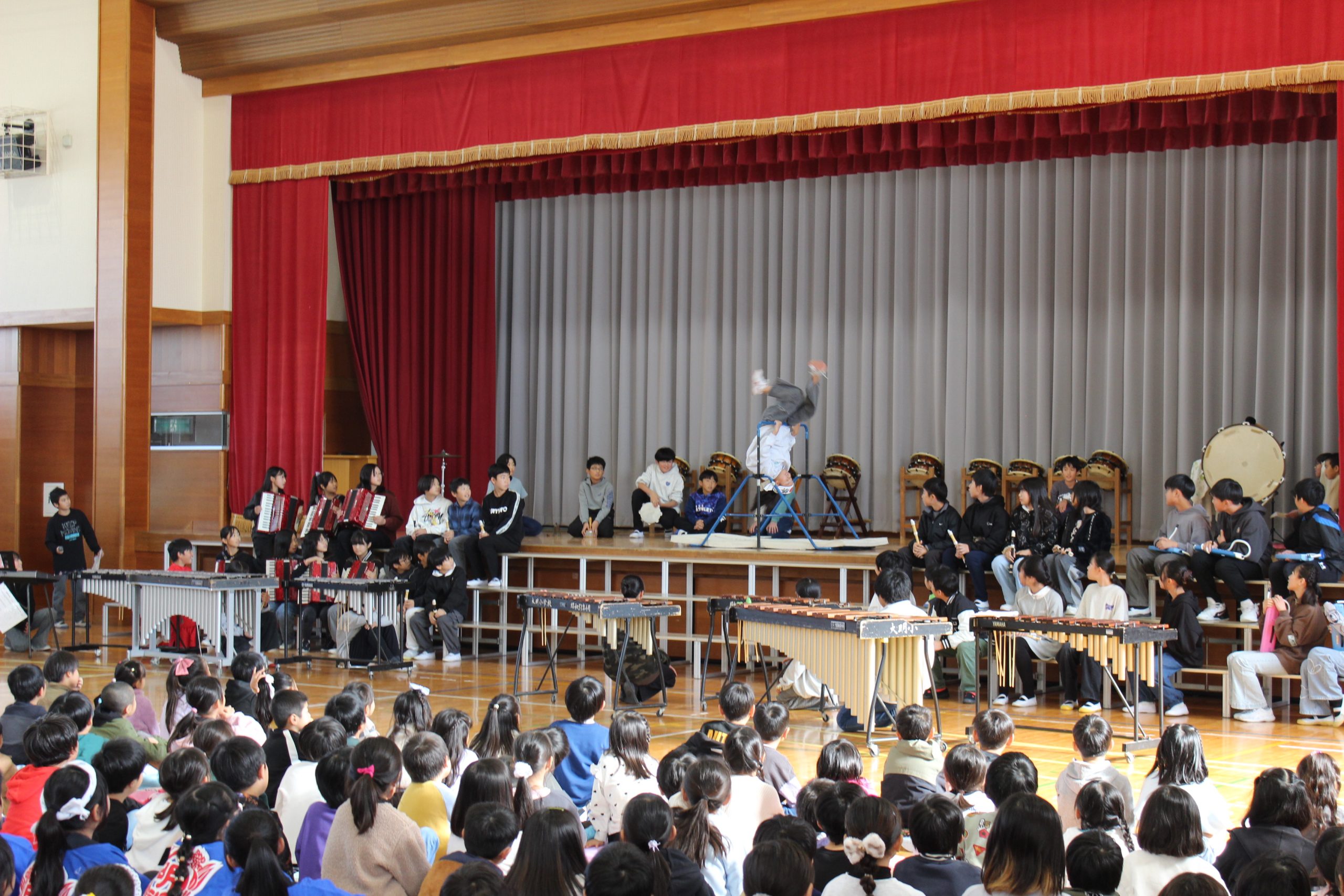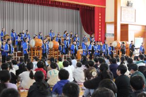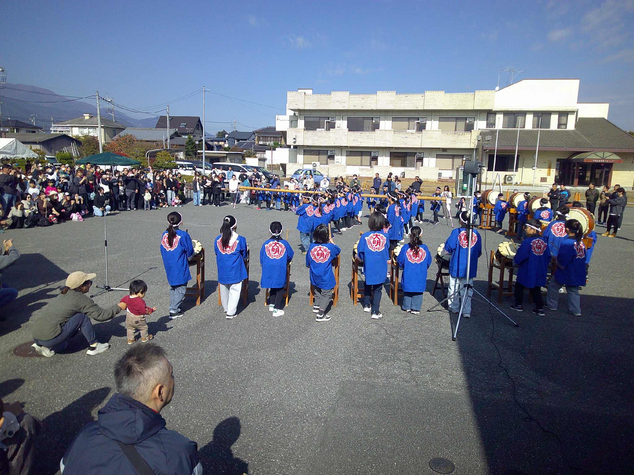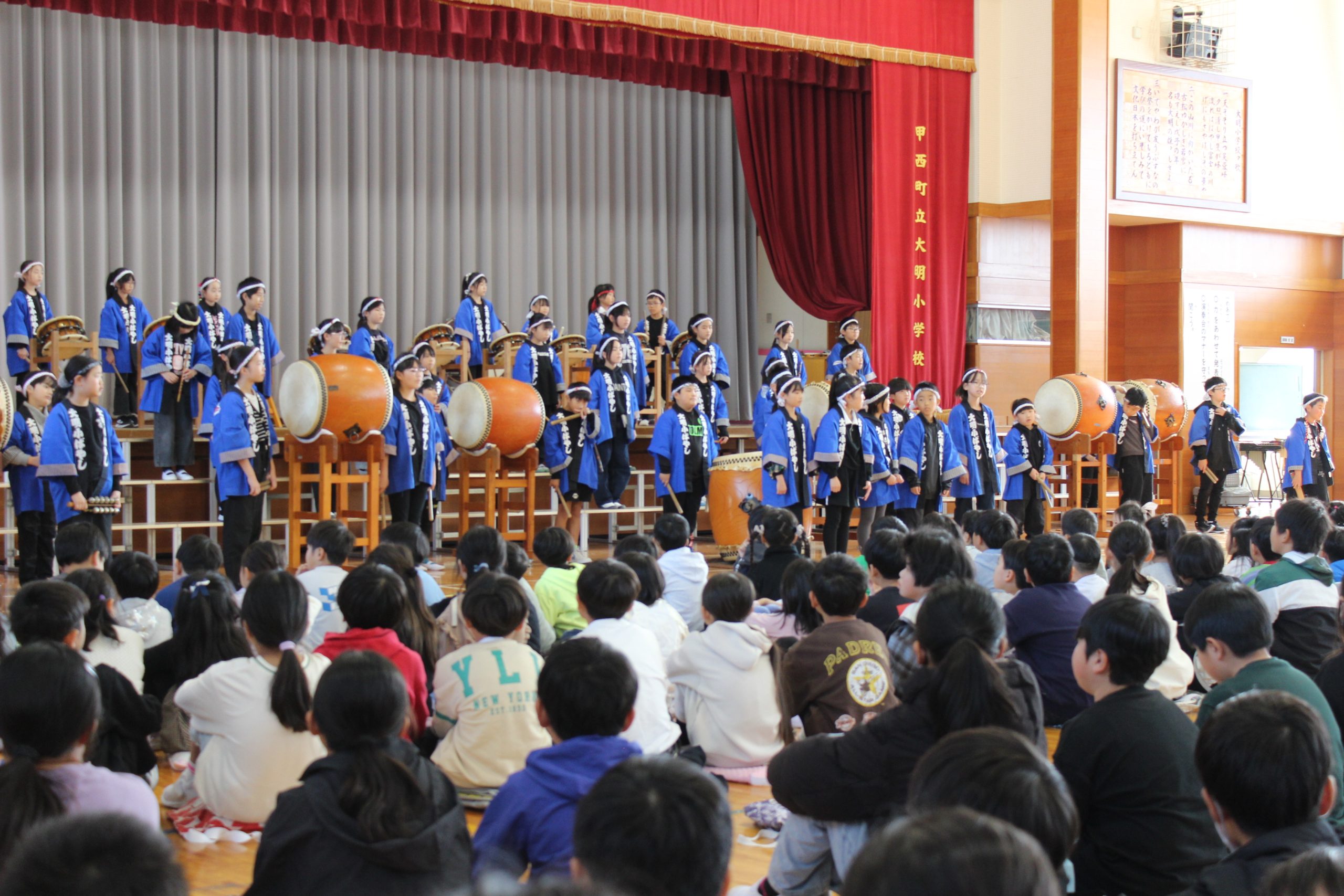 大明小学校の4年生は毎年、ふるさと祭りで「大明小ばやし」の発表を行っています。総合的な学習の時間に学習し練習してきた伝統の「大明小ばやし」を、元気よく演奏することができました。