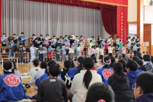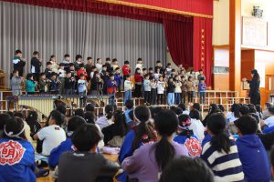 1年生から6年生まで、全校児童の歌声が体育館にひびきました。今日教えていただいたことを活かして、素晴らしい発表ができるように、引き続き練習に取り組みます。